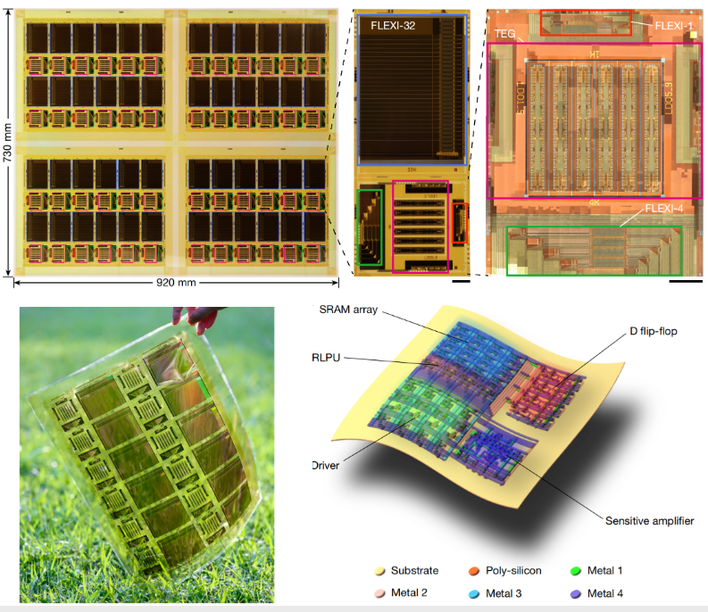 Developed using a low-temperature process on flexible plastic, FLEXI chips are thin, light and cost less than $1 each. They are also highly durable, withstanding more than 40,000 bending cycles while maintaining stable performance for over six months. In terms of performance, the chips achieve a clock frequency of up to 12.5 megahertz with a power consumption of just 2.52 milliwatts, according to the study.